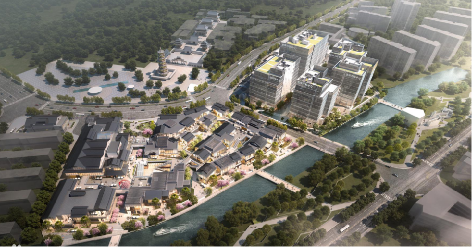 徐汇区龙华街道N11-08、N15-01、N15-05地块,为商办用地,四至范围为:东至龙华港,南至龙华西路,西至龙华路,北至居民小区。地块总面积达10.67万平方米,总建筑面积96780.3平方米,其中南区约10万㎡自持江南水乡商业,是集办公、商业等多重业态于一体的商办综合体。